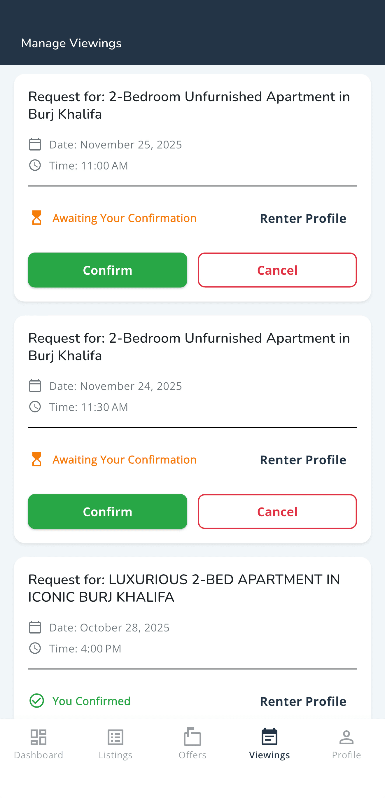 Automate viewings. Review verified renter profiles. Receive offers. Create & manage contracts. Register Ejari.