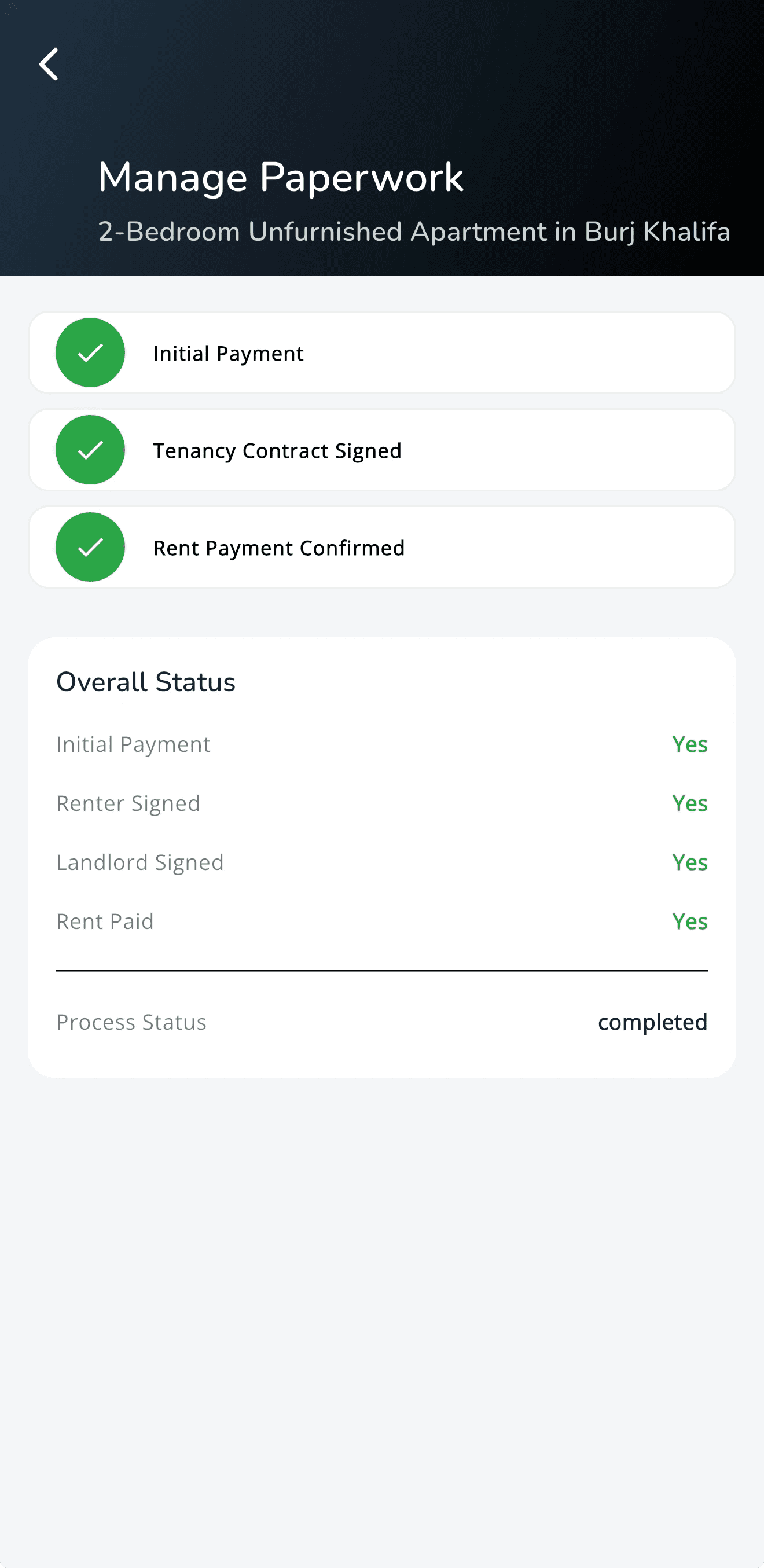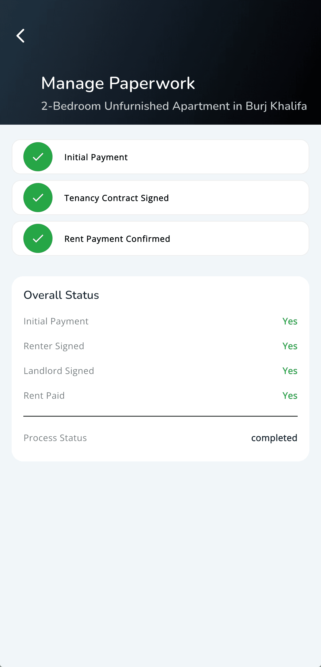 In app tenancy closings. Contracts, DEWA, Ejari in-app.